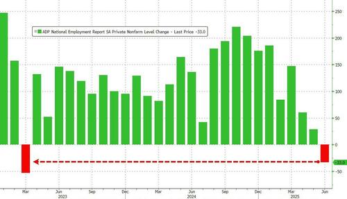 BUT… The headline print saw a 33k DROP in jobs in June (and a downward revision to +29k in May) – the biggest/first drop since March 2023