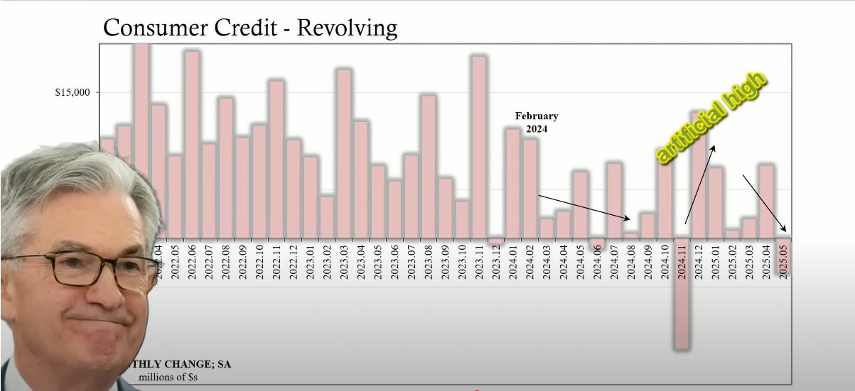 Adding to these worries, consumers are actively pulling back on credit. Revolving consumer credit, primarily credit card debt, declined by a significant $3.5 billion in May 2025, following a $7.5 billion increase in April.