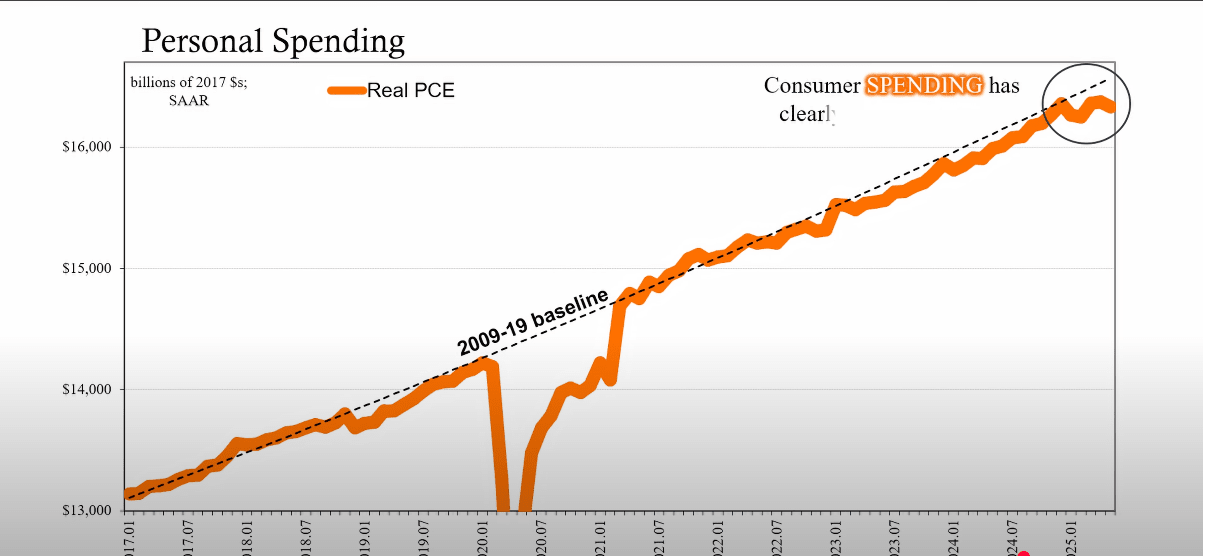 The impact on spending is undeniable. Real personal consumption expenditures have been negative on a five-month basis for the entire first five months of 2025 – a situation not seen since 2020. Retail sales fell in January 2025, and overall Personal Consumption Expenditures (PCE), which includes spending on services, have followed suit through the first half of the year, up to May, the latest available data. The only exception was a small pickup in March, which was largely attributed to consumers rushing to beat anticipated tariff price changes that, for the most part, haven’t materialized since.