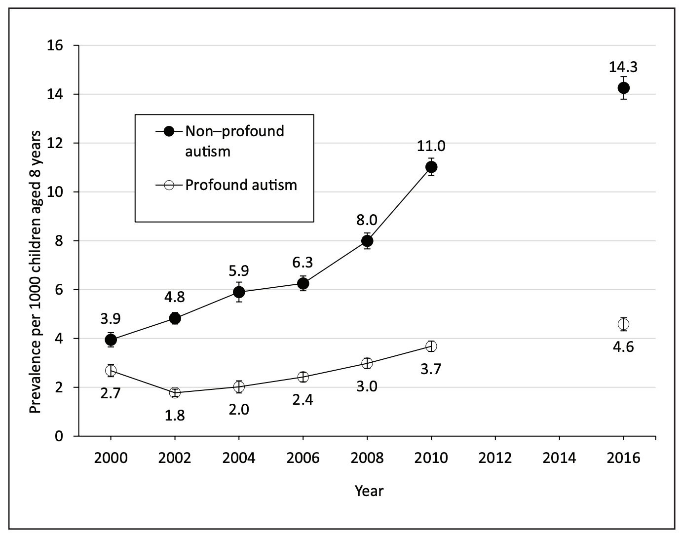 First, one of the primary studies cited to support the argument that the rise in autism actually is due to diagnostic reclassification is a 2009 study from California (conducted when the word retarded was being banned). Rather than show minor traits were being relabeled as autism, it showed 26.4% of children who had previously been diagnosed as “mentally retarded” became “autistic” (as did another commonly cited study).
