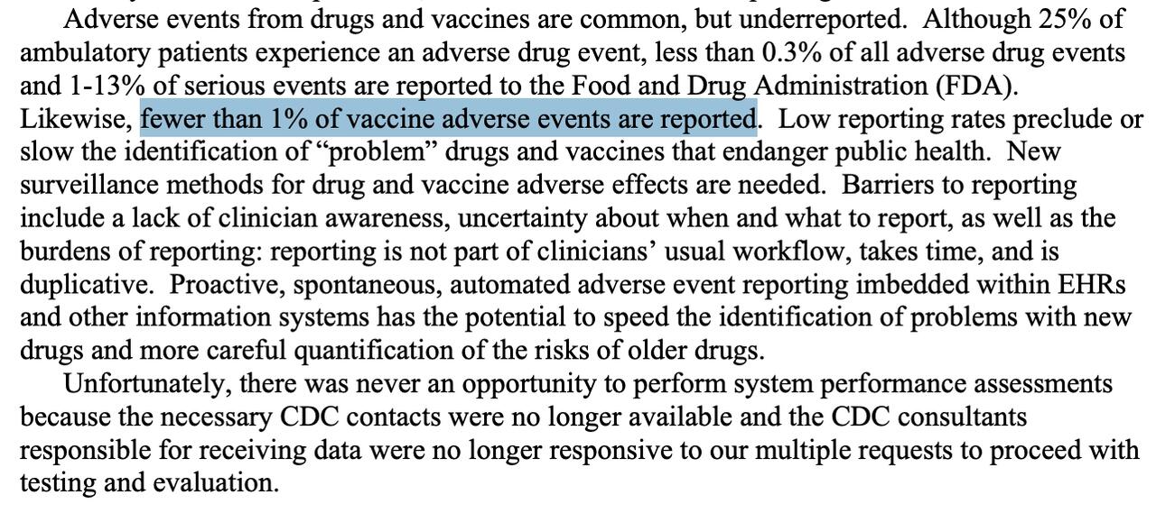 What did they find? VAERS was failing to catch over 99% of vaccine injuries.