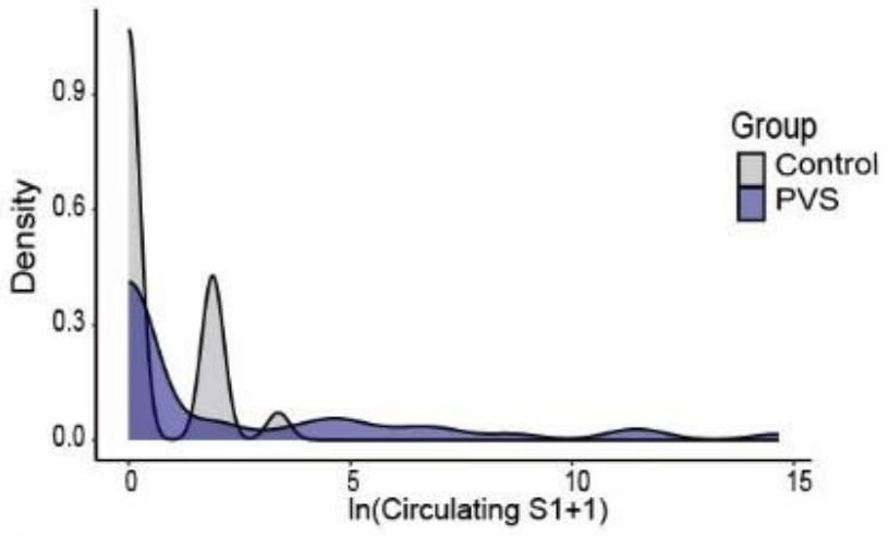 We observed significant increases in IgM reactivities against 65 antigens, IgG reactivity against 1 antigen and IgA reactivities against 39 antigens in PVS compared to controls after multiple testing corrections. Among these antigens, two showed log₂fold change of greater than 2: anti-nucleosome IgM [which is strongly associated with lupus] and anti-AQP4 IgA [which is associated with a rare autoimmune disorder that attacks the central nervous system, particularly optic nerve and spinal cord].