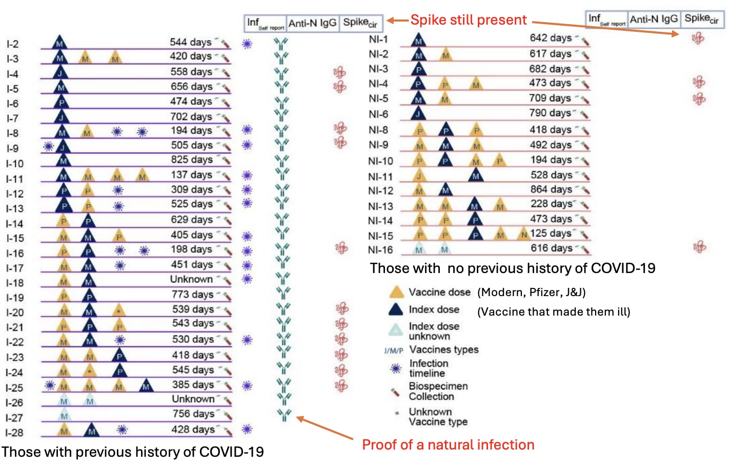 • The persistence of the spike protein without any proof of a natural infection provides strong evidence the vaccine’s spike protein is what’s persisting in the body.
