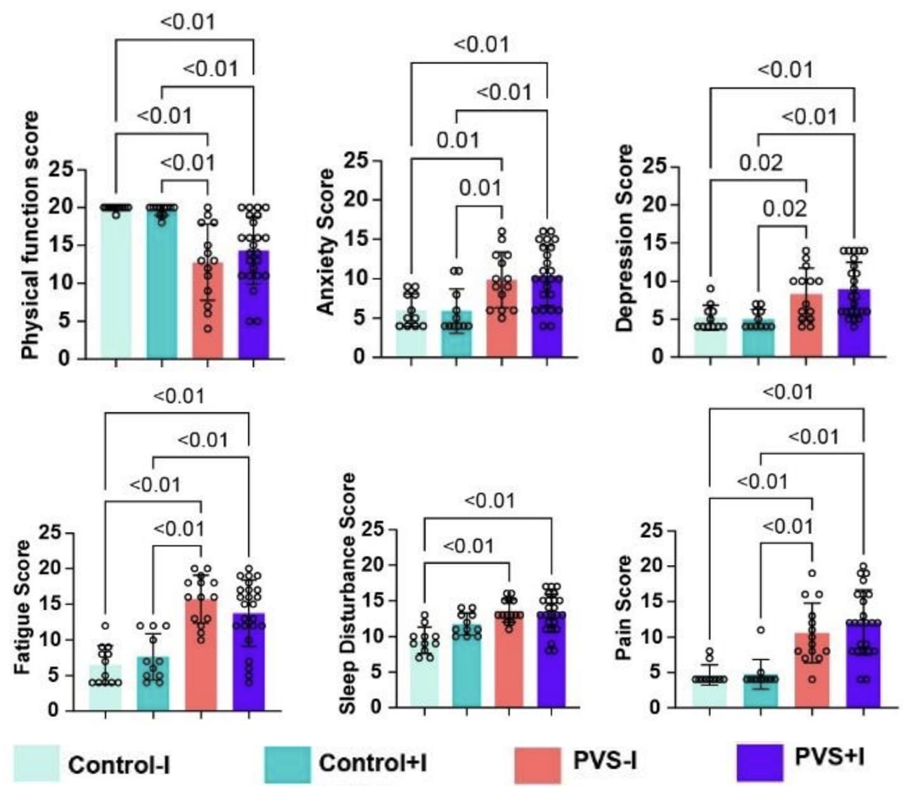 Vaccine-injured individuals reported lower general health scores, such as lower physical function scores, higher anxiety, depression, fatigue, and pain scores and increased sleep disturbances.